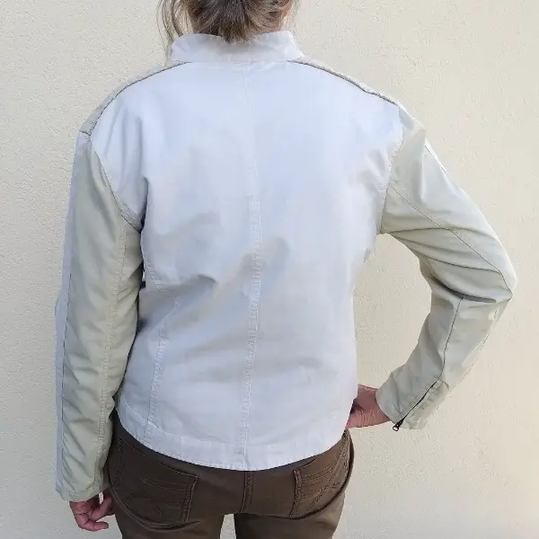 2 poches extérieures, 2 intérieures, polyester/coton, tour de poitrine 100cm, longueur 58cm, doublure synthétique, lavable en machine 40 degrés, marque Cibyll,