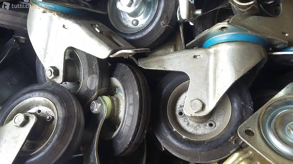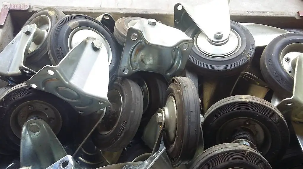 sehr wenig gebrauchte, neuwertige Schwerlast - Lenkrollen mit Feststellbremse und Schwenk- Arretierung, sowie Schwerlast - Bockrollen, Bereifung Grösse: 160/40-80
