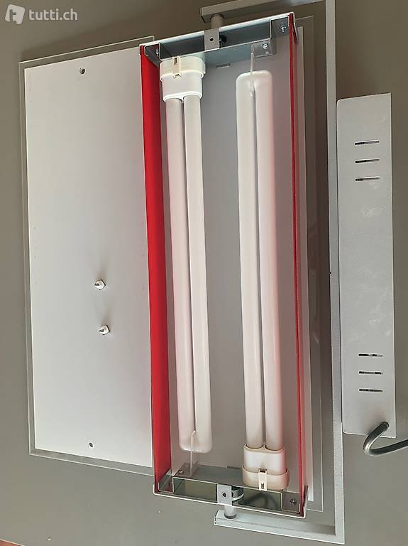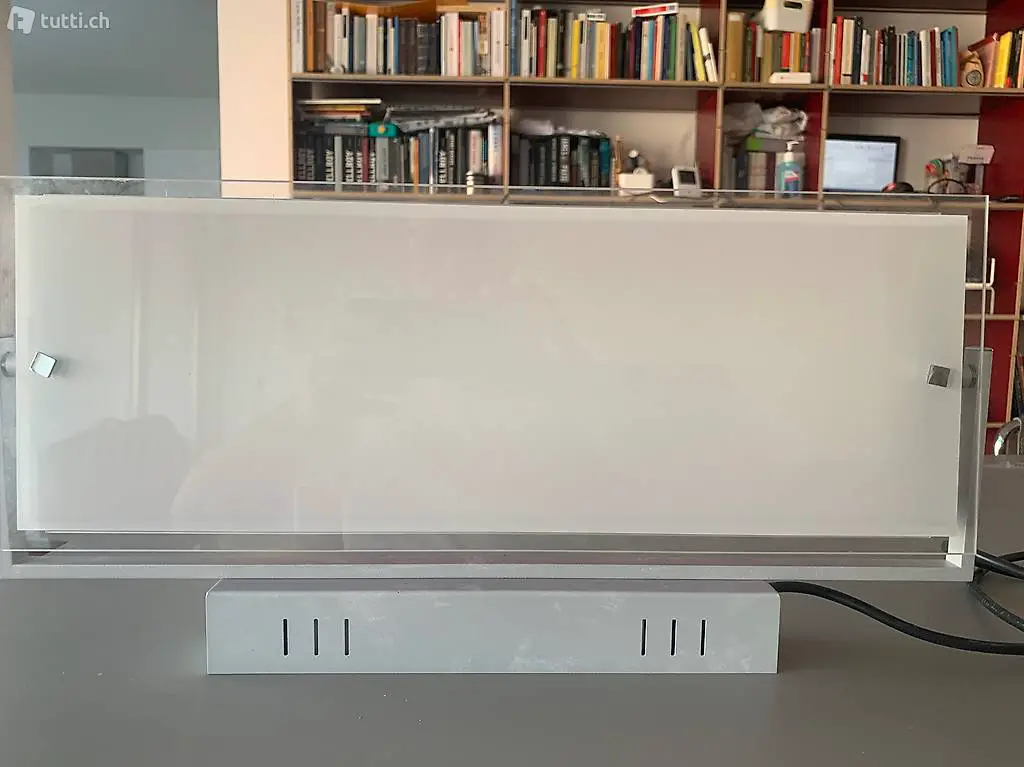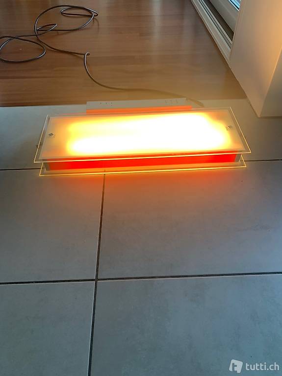 Vendo luce a parete al neon. Telaio in metallo, corpo in vetro opalizzato bianco, con inserti laterali rossi.