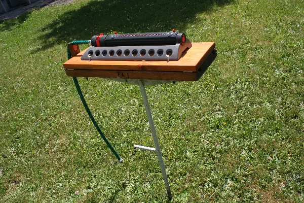 Sprinkler mit Hochsitz. Dieser Garten Sprinkler kann mit dem Stahlpfahl eingesetzt werden und die Bewaesserung findet ab ca. 1 Meter ab Boden statt. Dieser Garten Sprinkler ist fast neu. Abholpreis vom Garten Sprinkler CHF 50.--
