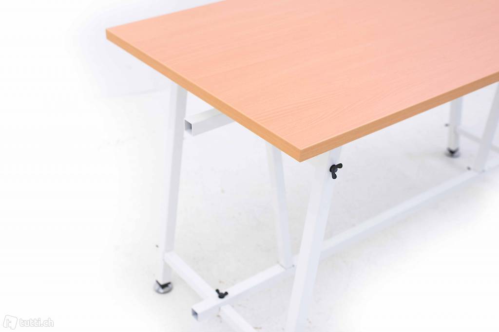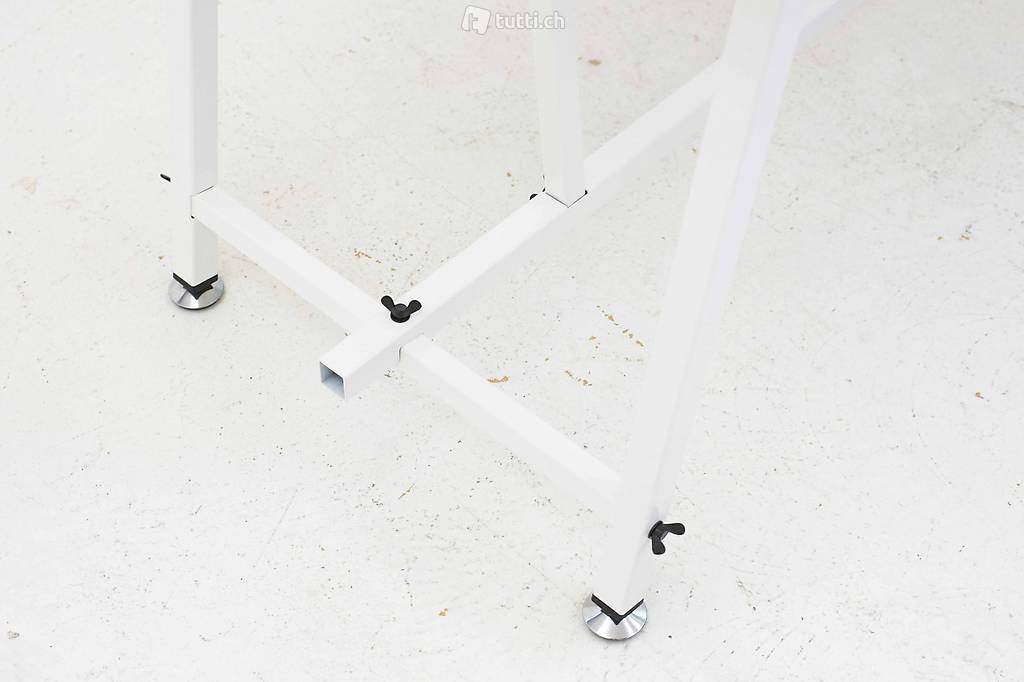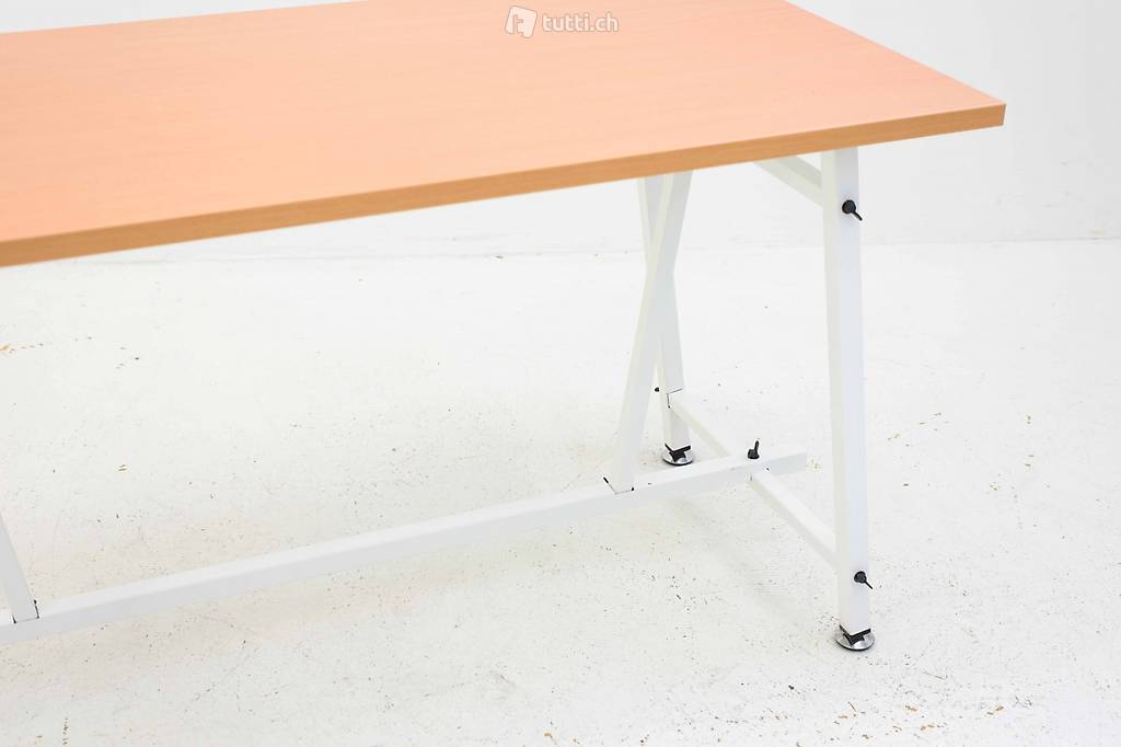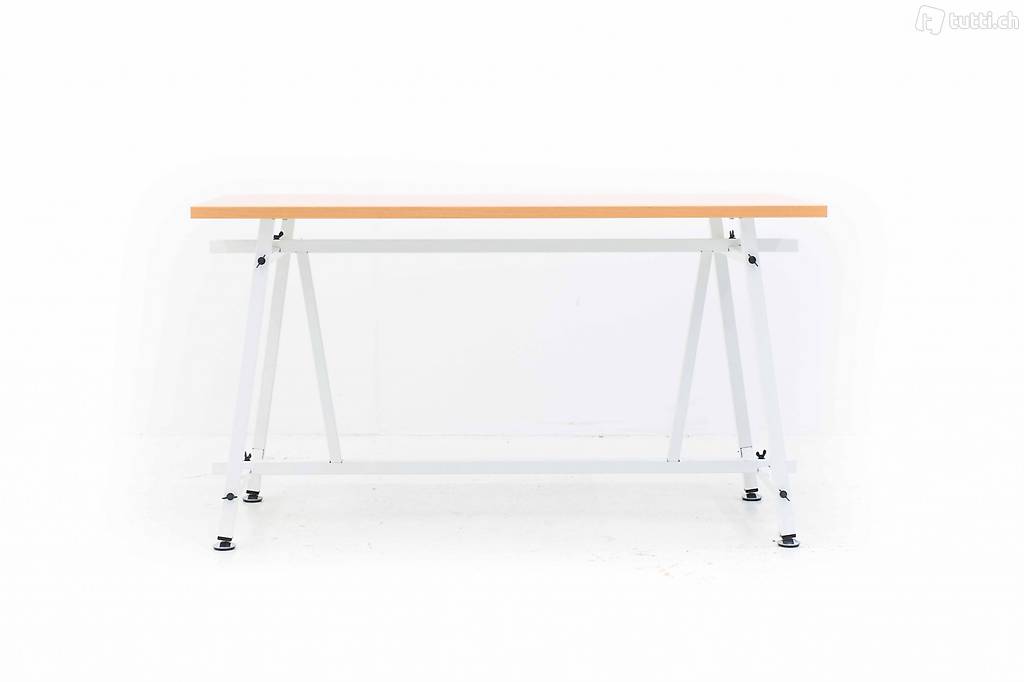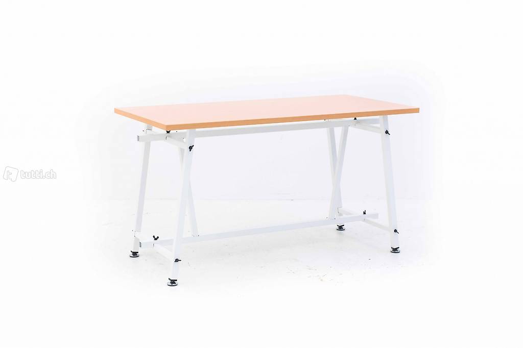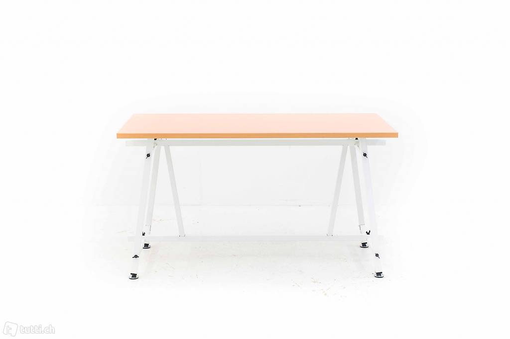 Atelier Tisch 4030 entwickelt. Der Tischunterbau kommt ganz ohne geschweisste Teile aus und ist dadurch komplett zerlegbar. Zwei verschiedene Platten an Lager, einmal in Pastelgelb und eine in Holzoptik. Beide Tische sind in einem sehr guten Zustand, nahezu neuwertig. Sie bieten auf den den Tisch mit der Holzoptik-
