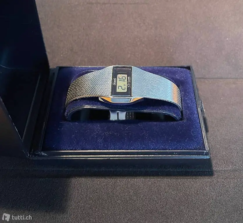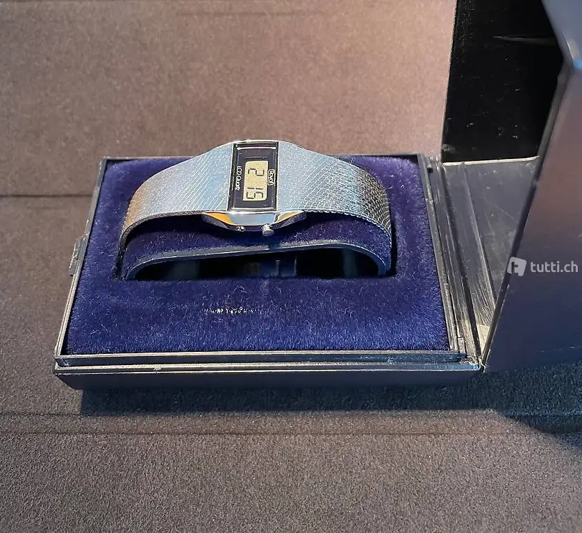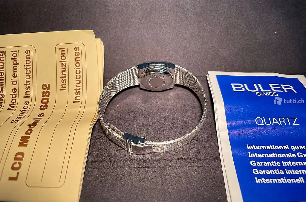 Buler Watch & Co. Royal LCD Quartz, anni 70/80, in ottime condizioni, perfettamente funzionante. Completo di scatola, garanzia e libretto di istruzioni originale. Batteria nuova. Set completo e originale, molto raro per amanti del vintage.