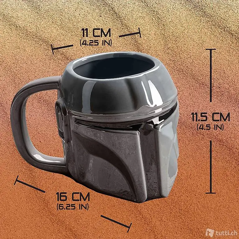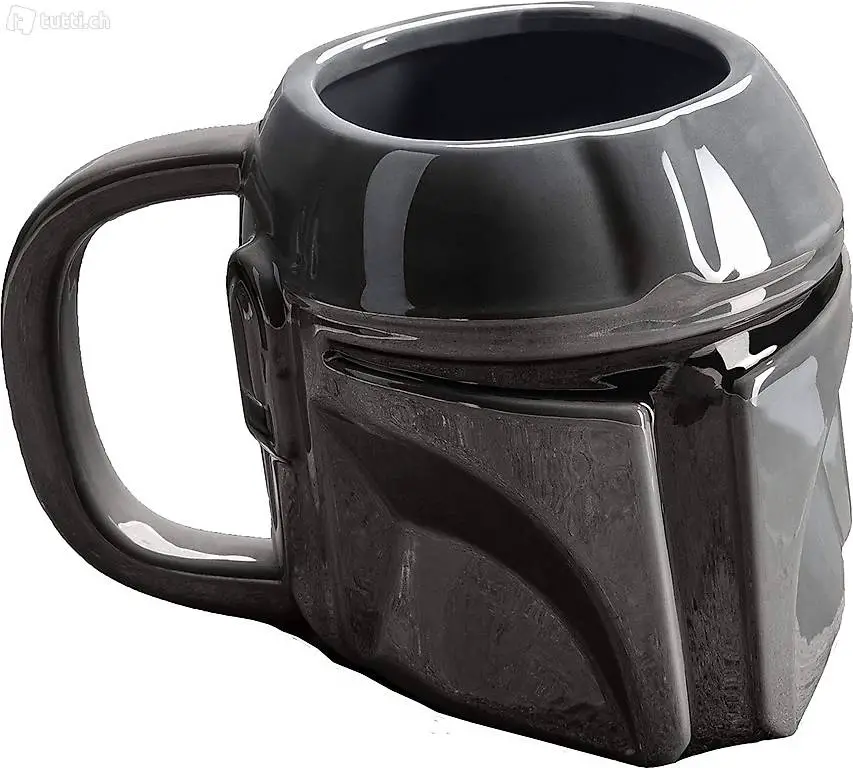 Mandalorianischer Helmbecher: Diese 3D-förmige Tasse wurde fachmännisch in der Form des Helms und dem unverwechselbaren T-förmigen Visier gefertigt, das von der Titelfigur der Star Wars Fernsehserie The Mandalorian getragen wird.