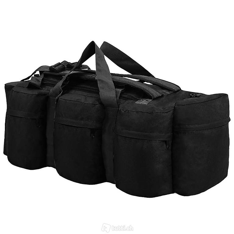 Schultertasche und eines Rucksacks im Einem und ist daher nicht nur der ideale Reisebegleiter, sondern auch das perfekte Gepäckstück für Pfadfinder, Jäger, Wanderer und andere Outdoor-Fans. Dieser Seesack ist aus reissfestem und wasserabweisend-beschichtetem Oxford-Gewebe gefertigt und kann besonders hohen Belastungen ausgesetzt werden. Er ist mit 1 grossen Hauptfach und 8 kleineren, äusseren Taschen mit