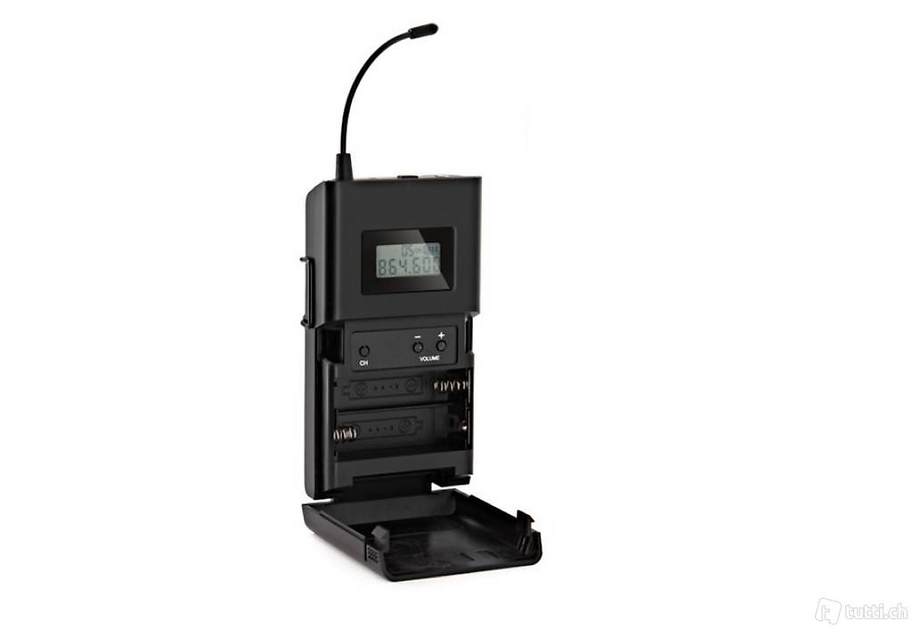 Das drahtlose In-Ear-Monitorsystem von Gear4music verfügt über einen leichten Empfänger, komplett mit Gürtelclip, sodass Sie es bequem an Kleidungsstücken oder Gitarrengurten befestigen können, um ultimative Bewegungsfreiheit zu gewährleisten. Der Empfänger verfügt ausserdem über einen LCD-