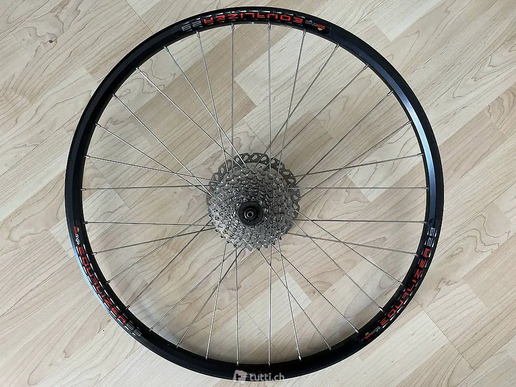 Sehr wenig gebrauchter kompletter Fahrradfelgen Satz von DT Swiss Sun Ringle Equalizer 29 mit Shimano Narben, 160mm Bremsscheiben und 9er Kassette.