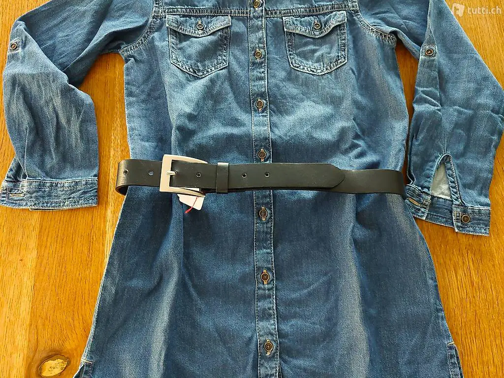 2er-Set Next Jeans- / Blusen Kleidli langarm mit 2 Brusttaschen Gurt stone washed blue Grösse 134
