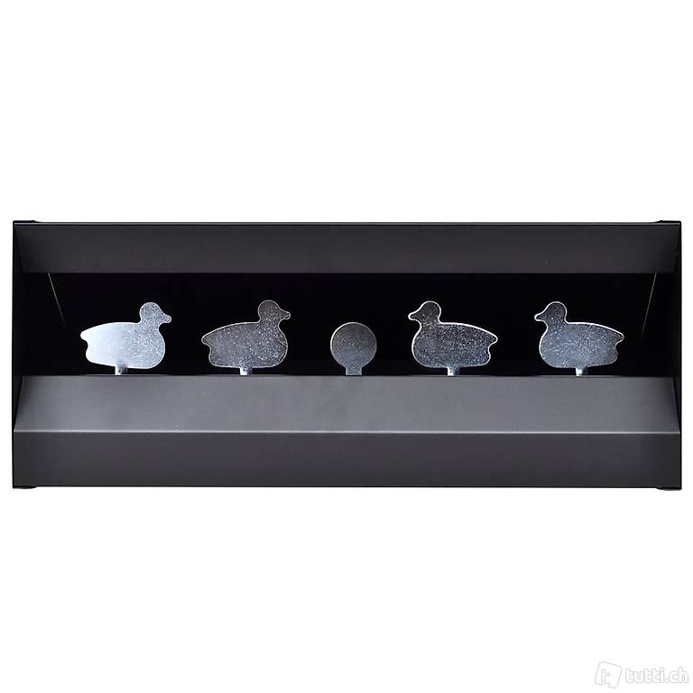 Tierfiguren zuerst abgeschossen und dann durch Drücken der zentralen Scheibe zurückgesetzt wird. Dank der robusten Stahlkonstruktion mit einer abgewinkelten