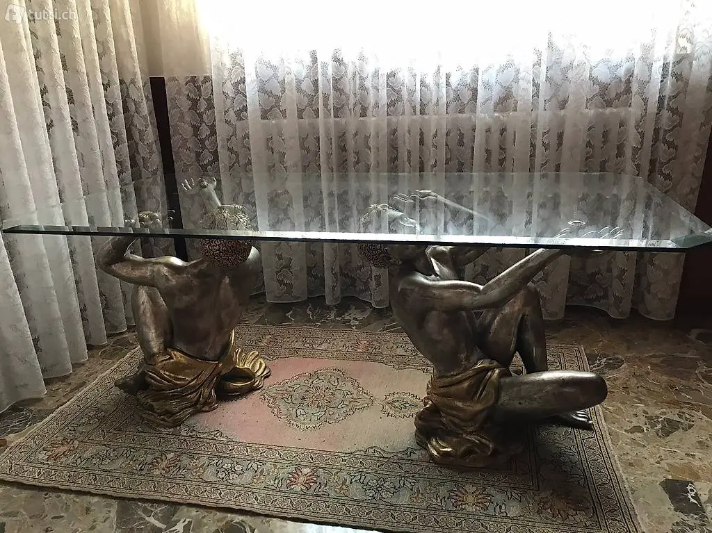 Vendo tavolino da salotto con vetro e due mori che lo sorreggono.