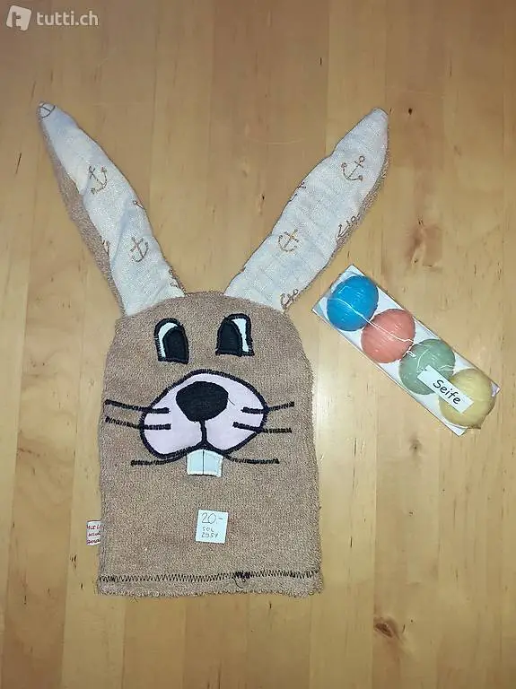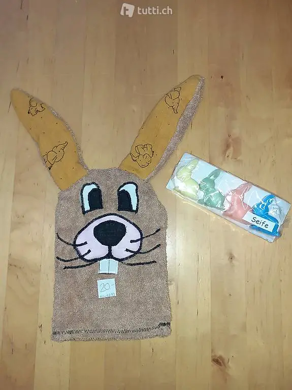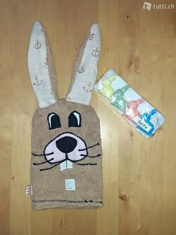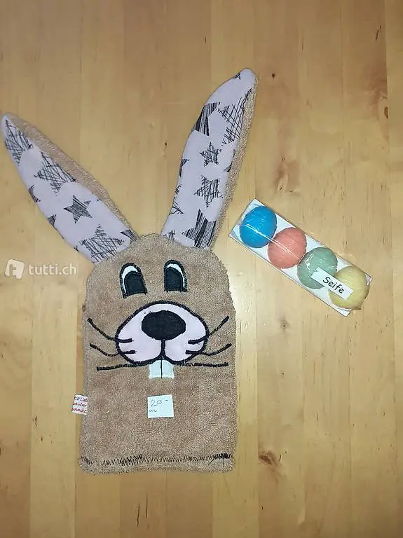 Hasenwaschlappen Selbst genäht. "Mit Liebi säuber gmacht" Stück Fr. 20.- plus Porto Fr. 2.- dazu zu empfelen die selbst gemachten Hasen Seifen Pack Fr. 5.- Porto Fr. 3.-, schau weitere Inserate.