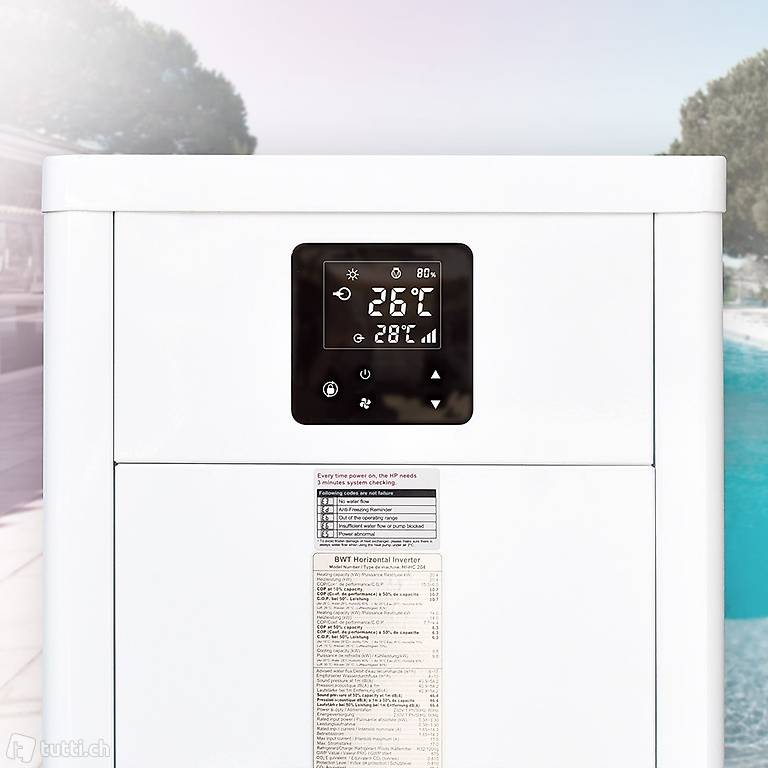 La Pompe à chaleur BWT Inverter horizontale connectée offre un confort optimal pour la baignade. Puissance en chauffage, Air à 26° C, Eau à 26° C: 8.5 kW.Pour des volumes de bassins compris entre 30 et 60 m3.