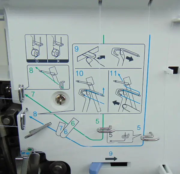 Differenzialtransport zum professionellen Verarbeiten jeder Stoffart. Verhindert das Wellen oder Dehnen der Nahtränder. Vierfarbig codierte Fadenführung.