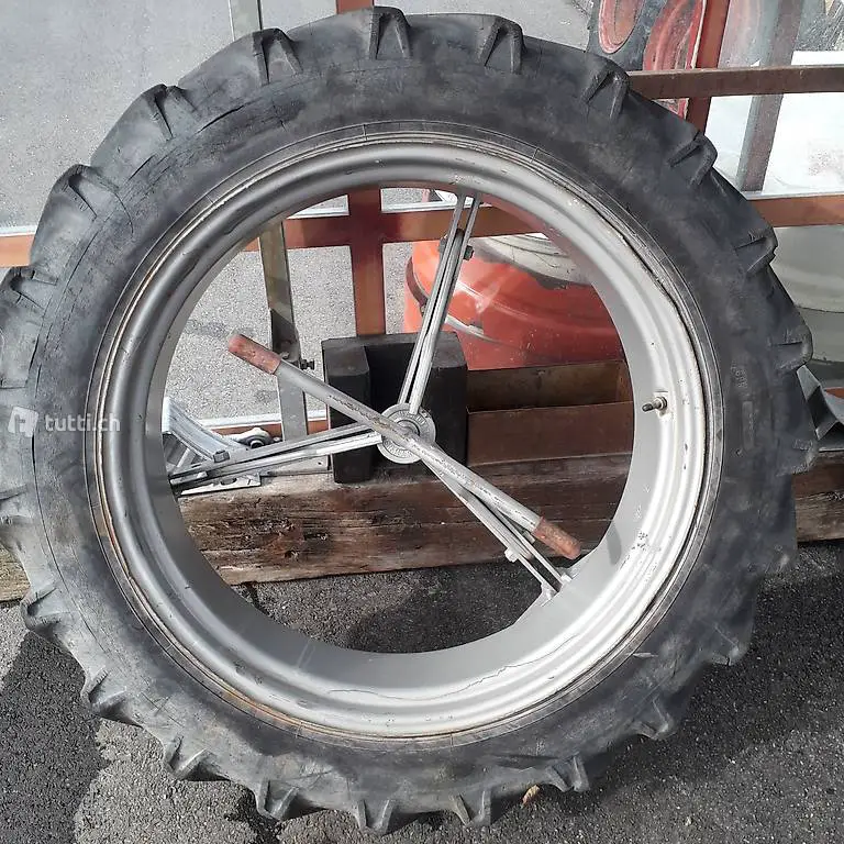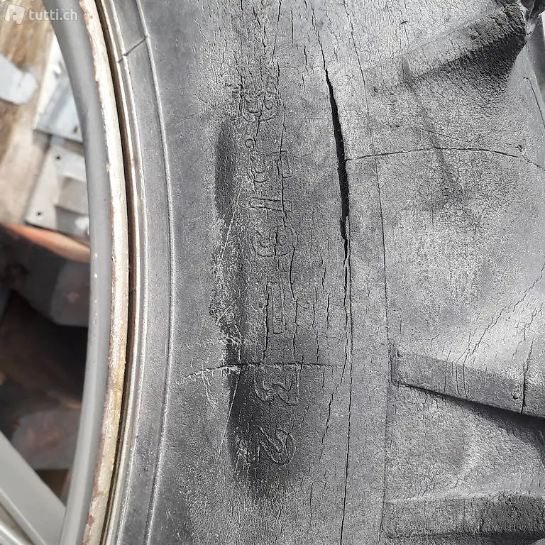 Pneu hat Risse, siehe Foto, sonst in gutem Zustand. Auf Wunsch Mitlieferung der original Anschweissklötze für Handy Danmark Kock 6 Stk. für total Fr. 100.-