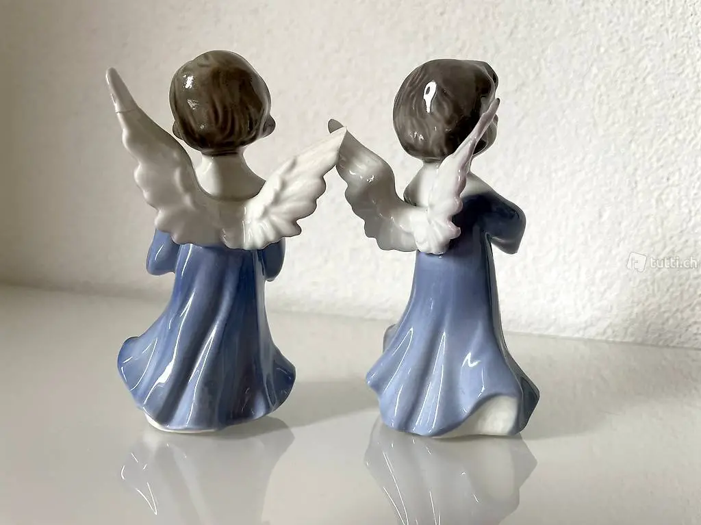 Gib deiner Sammlung ein Upgrade mit diesen beiden hübschen Porzellan Engel. Höhe der Engel (stehend) ist ca. 11 cm. Bei einem der Engel ist die Spitze des Flügels abgebrochen und wurde wieder angeleimt. Die Engel können in Biel abgeholt werden oder gegen Porto per Post verschickt werden. Anfragen bitte per SMS oder E-Mail. Danke!