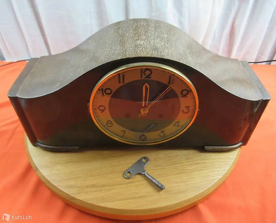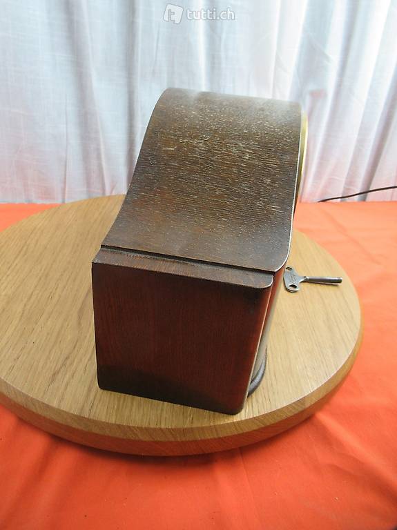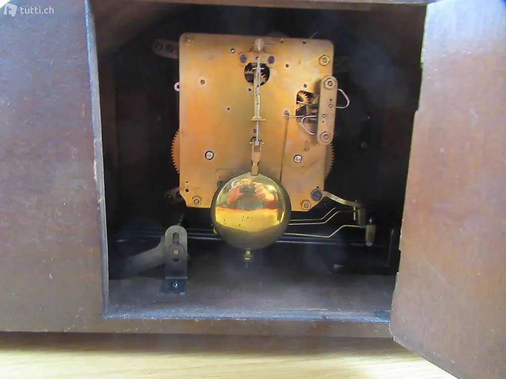 Schöne alte gebrauchte Uhr so wie sie früher in jeder Wohnstube zu finden waren. Sollte funktionieren, verkaufen sie aber als defekt an Bastler und Sammler. 45 x 15 x 21 cm.
