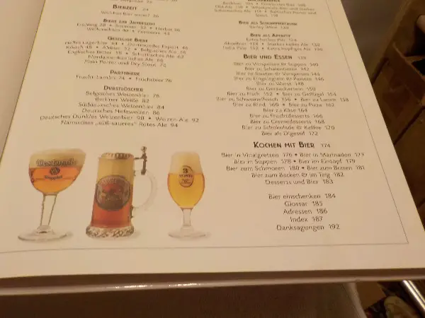 Buch über Biere / mit diesen Inhalten: Was macht ein gutes Bier aus / Krafttrunk / Bierzeit / Winterwärmer / Biere als Schlummertrunk / Bier zur Jahreszeiten / Bier als Aperitif / Gesellige Biere / Bier und Essen /Partybiere / Durstlöscher und Kochen mit Bier. Buch im neuwertigem Zustand / diverse farbige Abbildungen / mit 192 Seiten / Masse: Breite 23.5 cm Höhe 28.5 cm Dicke 2 cm
