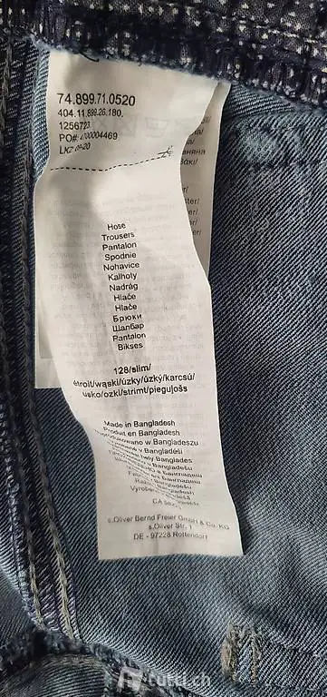 Neuwertige Kinder Jeans von der s.Oliver in der Grösse 128 zu verkaufen. Verstellbare Bündel oben. Nichtraucher und Tierlose Haushalt. Abholung oder Versand möglich. Twint vorhanden...bei Fragen, schreiben Sie...