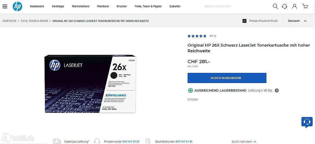 Vor kurzem wurde eine neue Original HP Nr. 26X High Capacity
