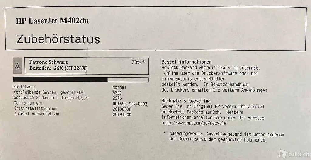 Installierte Original HP High Capacity Verbrauchsmaterial beiliegend: