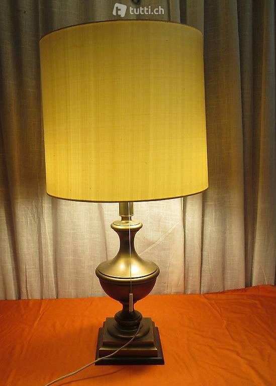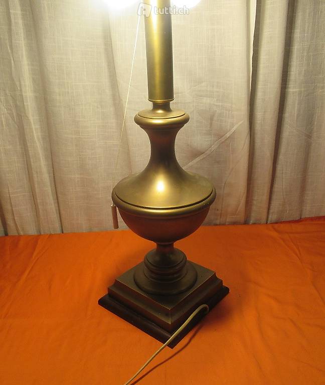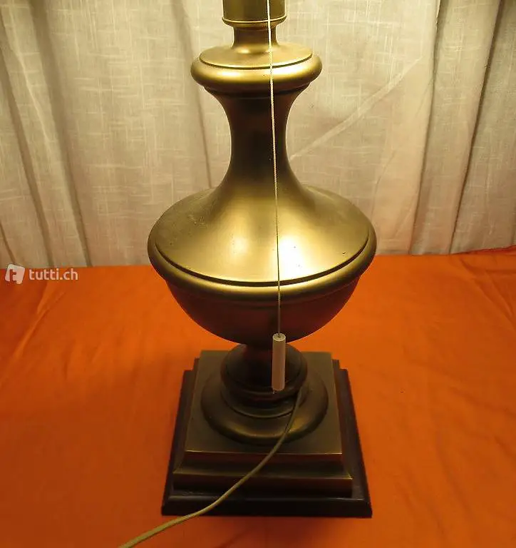 Tischlampe mit massiven und schweren Messingfuss. Man kann die