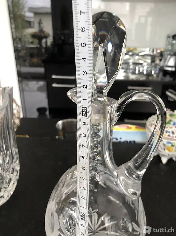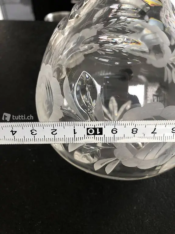 kleine Kristall Karaffe, 20cm h x 13 cm b plus 7 cm Zapfen