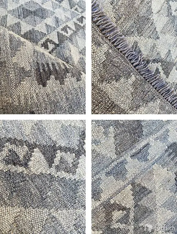 Naturwolle und mit Pflanzenfarben gewoben. Geometrische Mustern. Flachgewebe ohne Flor, sehr leichte Materialien. Handgewoben in Afghanistan