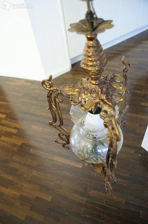 Ganze Lampen Höhe mit der Kette und schirm 58 cm, obere Durchschnittsmasse der Lampe 22 cm, untere Durchschnittsmasse der Lampe 22 cm, Schirm Höhe 19 cm, untere Durchschnittsmasse des Schirmes 5 cm, obere Durchschnittsmasse des Schirmes 11 cm.