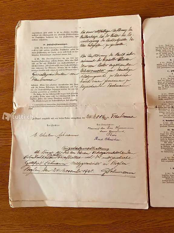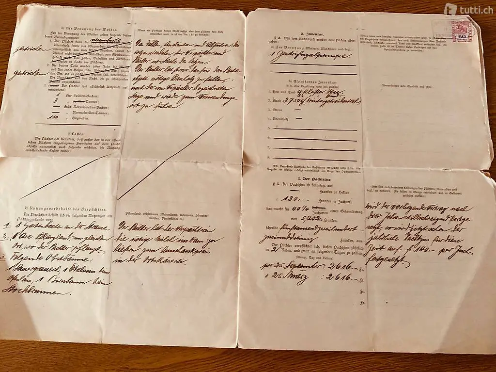 Dieses Dokument ist ein Vertrag über Vermietung eines landwirtschaftlichen Heimwesen, bestehend aus Kulturland, Haus Hof und Garten.