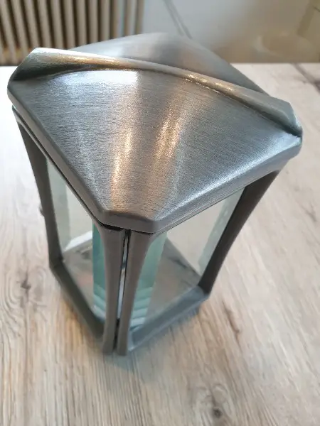 Grablatern sehr hochwertig gefertigt aus deutscher Marken- Produktion. Material Aluminium oder Bronce, Glasscheiben mit Facettenschliff umlaufend, Öffnung über Eck d, h. für Sie sehr guten Bedienkomfort beim wechseln der Brennkerzen, kein Verbrennen der Hände ect. Nachkaufgarantie für alle Teile der Laterne.