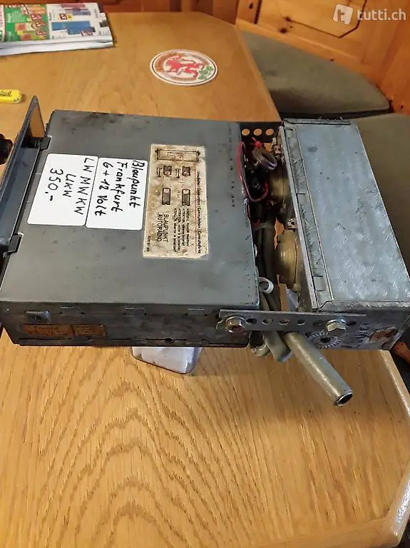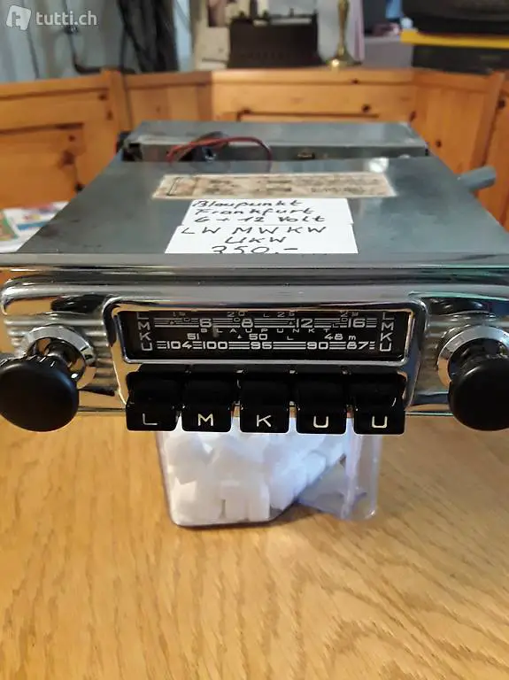 Blaupunkt Frankfurt mit LW/ KW/ MW/ UKW Empfang umschaltbar von Plus auf Minus undvon 6 Volt auf 12 Volt speziell für Englische Oldtimer schöne Chromblende gereinigt geprüft läuft tip top einbaufertig für ihren Oldtimer habe mehrere Radios im Angebot alle sauber geprüft auch repariert sehen sie alle Angebote im Trovas Lieferkosten Inklusieve