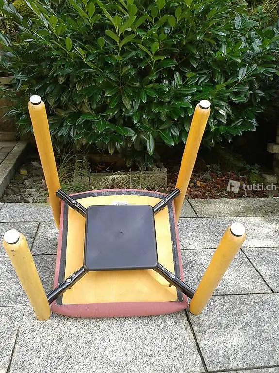 Massivholz, (Buche) daher sehr stabil und Angenehm zum sitzen . Sie sind nicht neu, daher gibts gewisse Gebrauchsspuren .