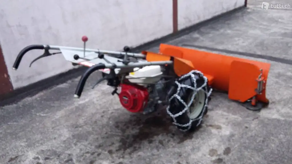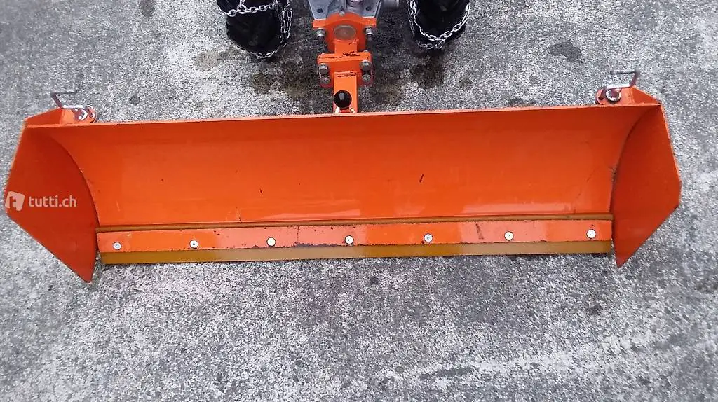 ausgerüstet mit neuen Schneeketten und 130 cm Hässig - Schneepflug mit neuer Polyurethan (Gummi-) Schürfleiste, Klappbare Seitenbleche zum Schneetransportieren ....