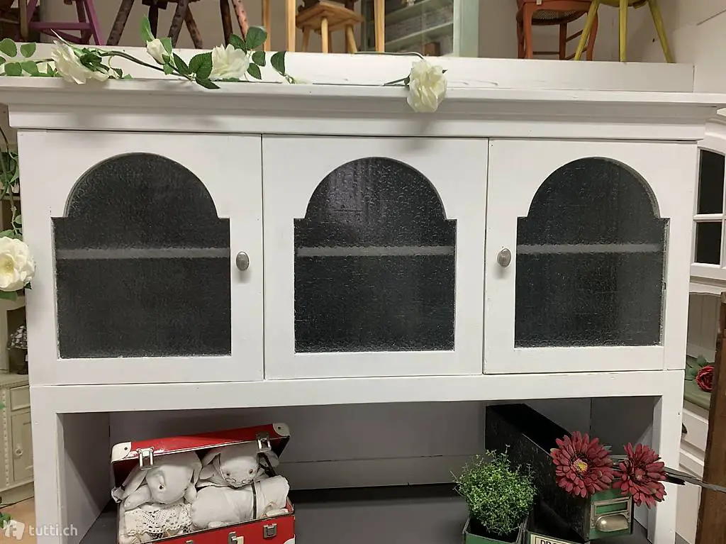 Antikes einzigartiges Buffet mit Vitrine aus Massivholz. Eignet sich hervorragend zum Verstauen diverser Gebrauchsgegenstände mit Schubladen und Türli.