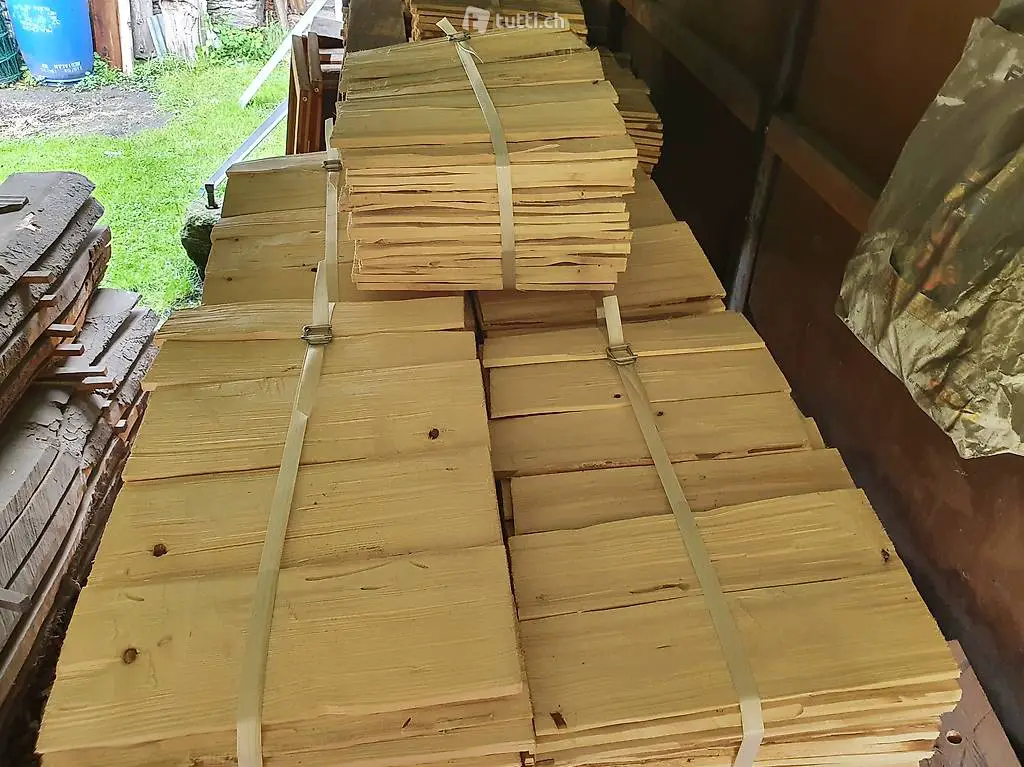 habe einen Posten rustikale Schindeln zu verkaufen. Länge 30 cm, Breite verschieden für die Verlegung im Glattschirm Reihenabstand (Sprung) 12,5 cm.