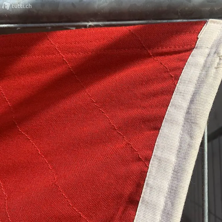 Die Flagge besteht aus hochwertigem Stoff. Das Schweizerkreuz ist aufgenäht (nicht gedruckt) , und die Ecken wurden speziell verstärkt, damit sie bei Wind nicht ausfransen. Auf der Befestigungsseite befinden sich drei stabile Karabinerhaken.