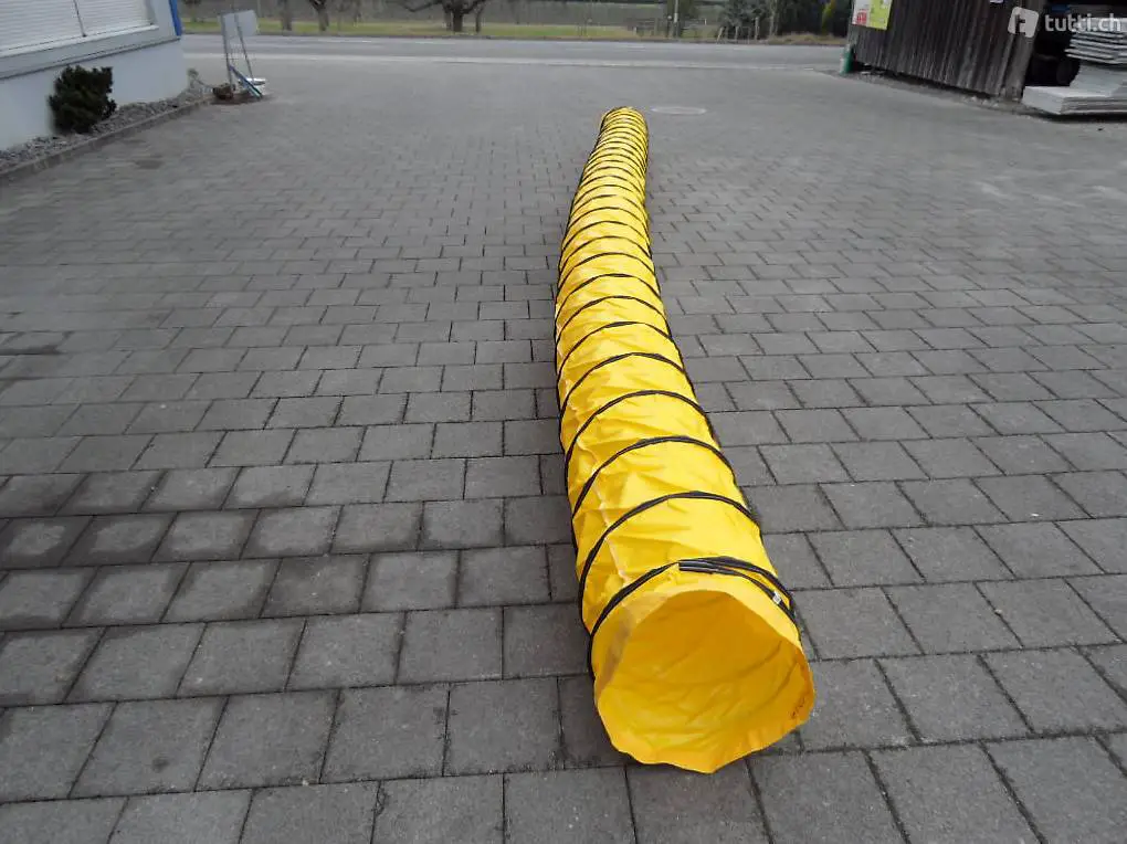 Sehr flexibler Schlauch aus beidseitig spezial PVC-beschichtetem Polyestergewebe. Aussenliegende Spirale unter dem Scheuerschutz, innen glatt durch Längsnaht (saumfrei) . Extrem stauchbar. Beiderseits spiralfreie Muffen. -20°C bis +100°C