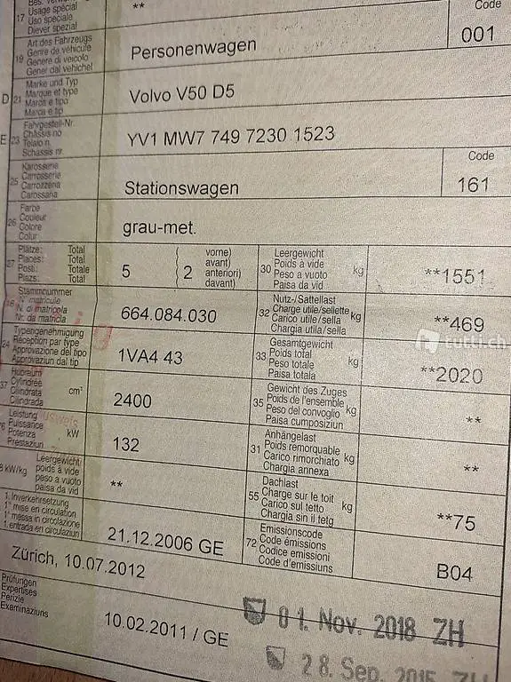 Volvo V50 D5 Ersatzteilverkauf Auto ohne Zylinderkopf
