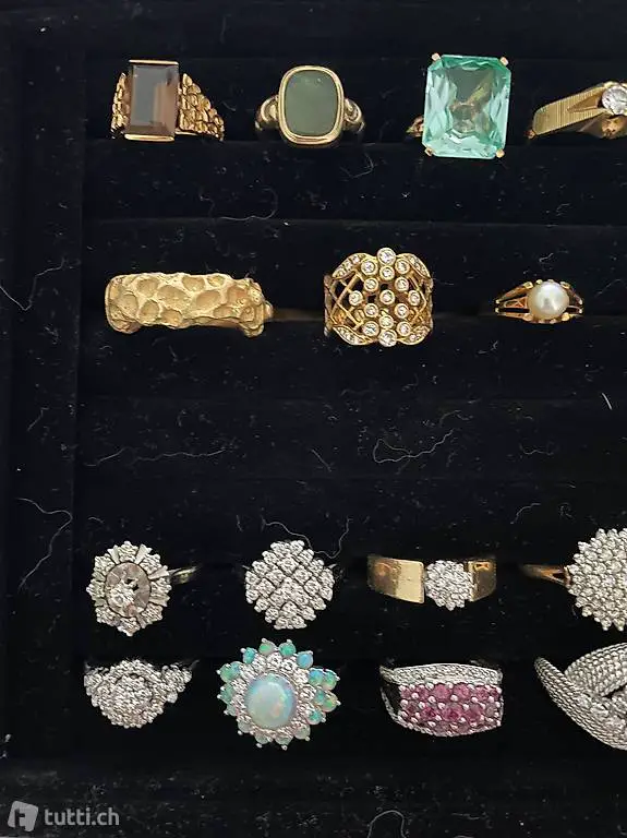 Alle Ringe sind aus Gold (333, 585, 750) in Gelb- oder Weissgold. Alle Steine hochwertig. Wenig bis gar nicht getragen. Top Zustand.