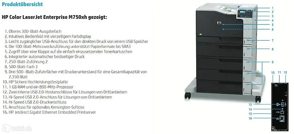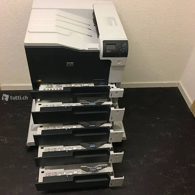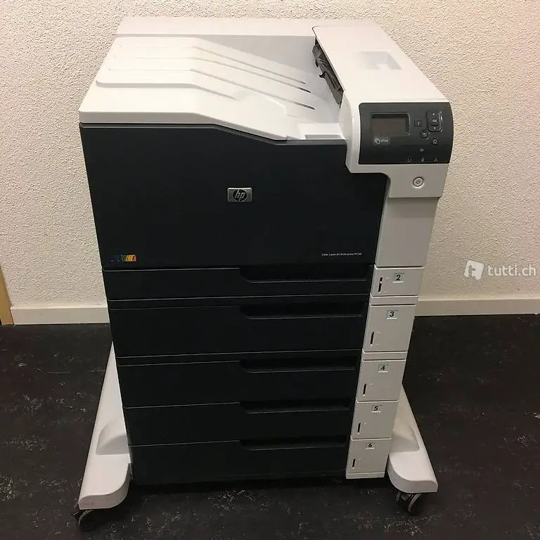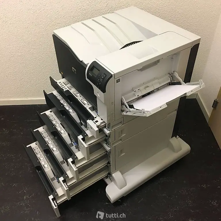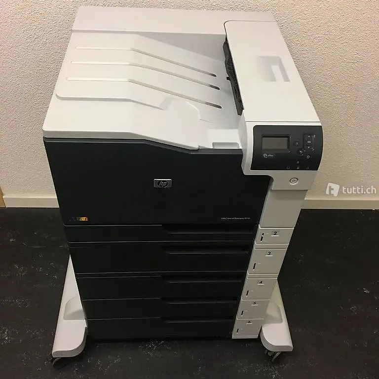 Für professionelle Anwendungen konzipierten HP Color LaserJet Enterprise M750 Drucker mit Top Ausstattung. Duplexdruck, Netzwerkkarte, High-Speed USB 2.0 Anschluss, 1024 MB RAM, 500-Blatt Zusatzfach, 3 x 500 Blatt Zusatzfach mit Untergestell auf Rollen, viel Zubehör.....