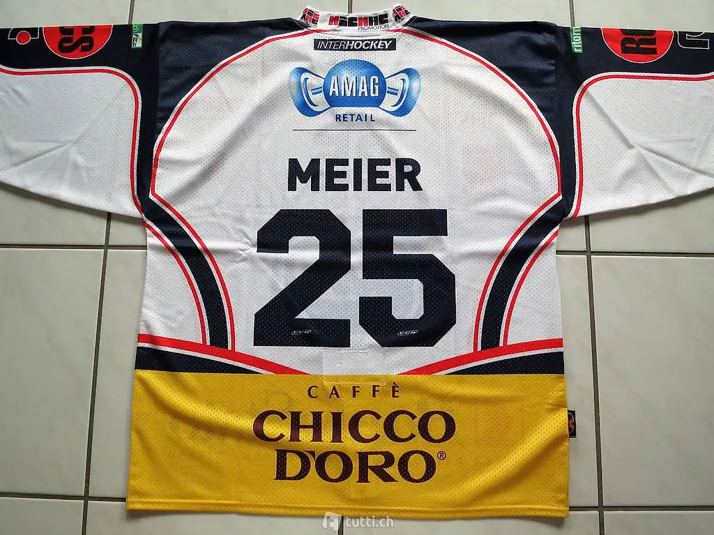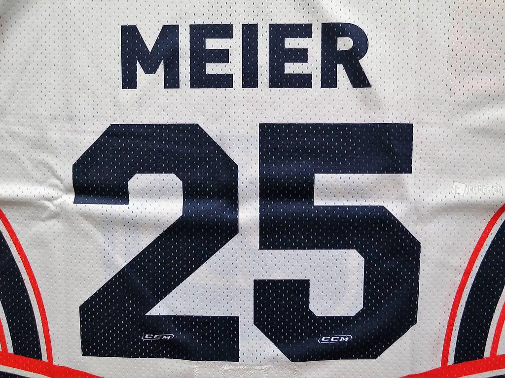 Hockey Jersey in der Spielerversion mit fight strap mit Rückennummer 25 und Namen MEIER sowie der Nummer 25 vorne auf der Brust von der Saison 2010-2011.