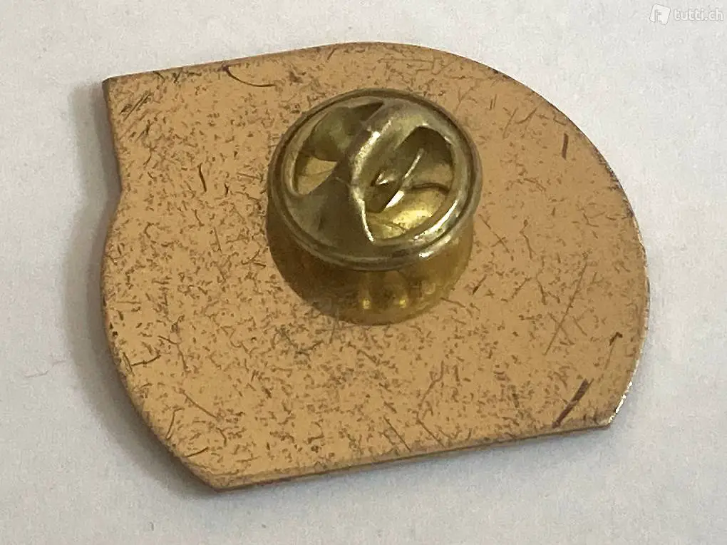 mit Stecknadel und Nadelklemme auf der Rückseite