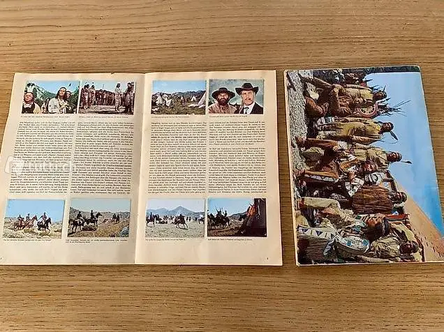Klebebilder-Hefte mit zahlreichen farbigen Filmszenen aus den Karl May-Verfilmungen mit Lex Barker, Pierre Brice und Co. Hübsche May-Devotionalie, vollständig - gut erhalten