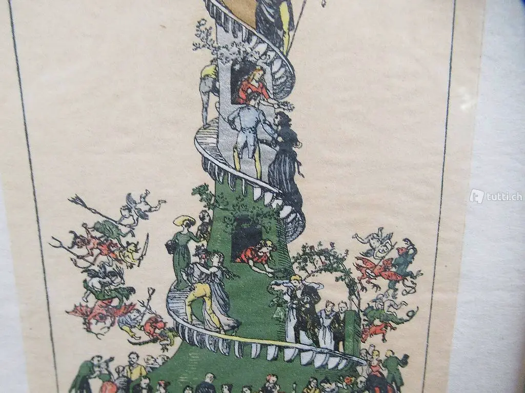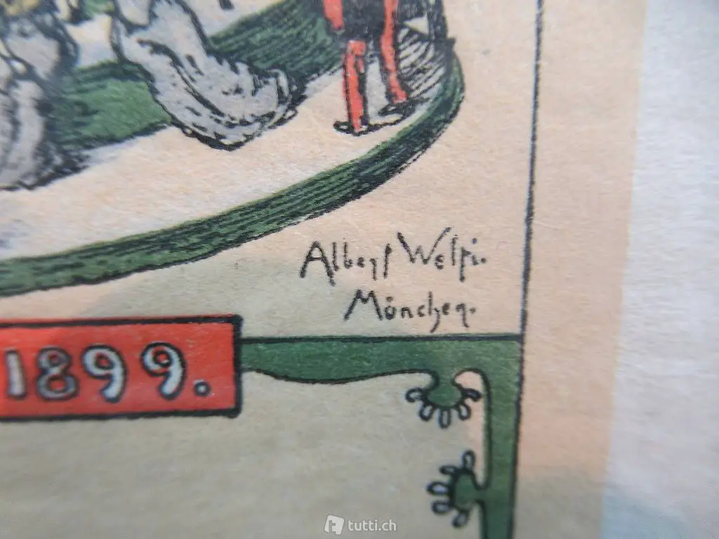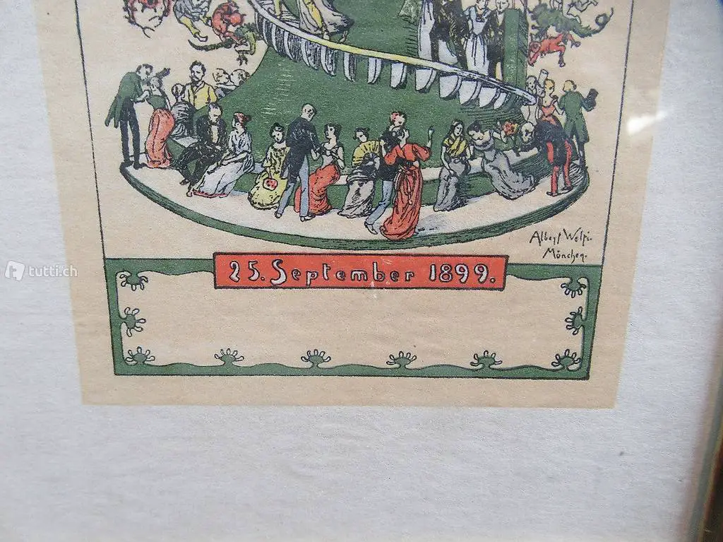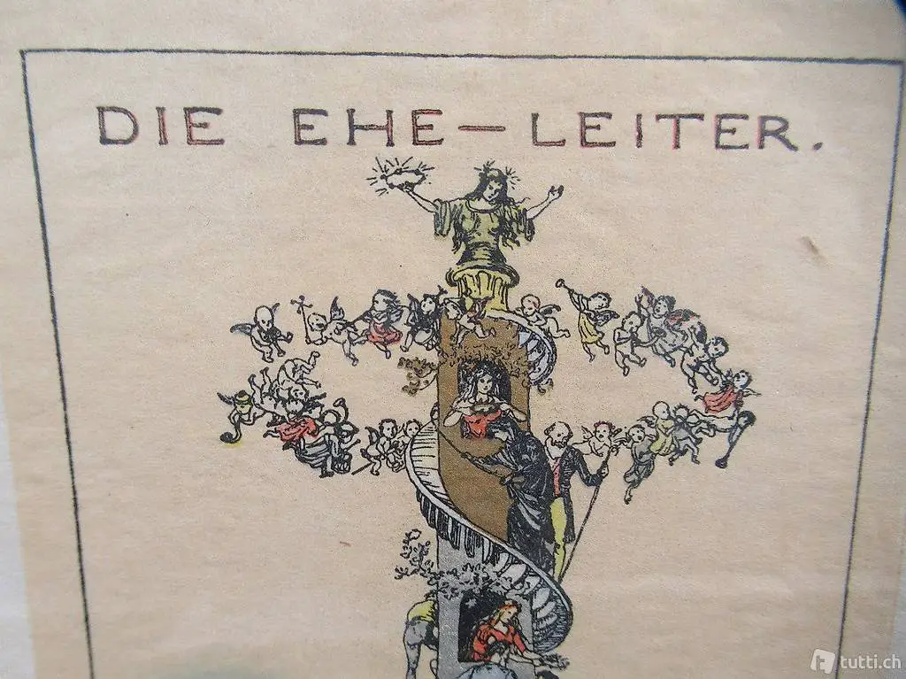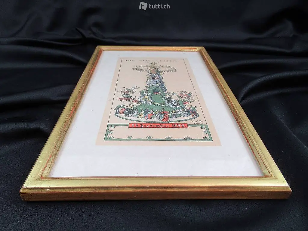 Die Ehe Leiter. 25.September 1899, Zinkätzung mit Farbplatten in Holzschnitt. Unten rechts innerhalb der Darstellung im Druck signiert: Albert Welti, München. Geboren 1862 in Zürich und gestorben 1912 in