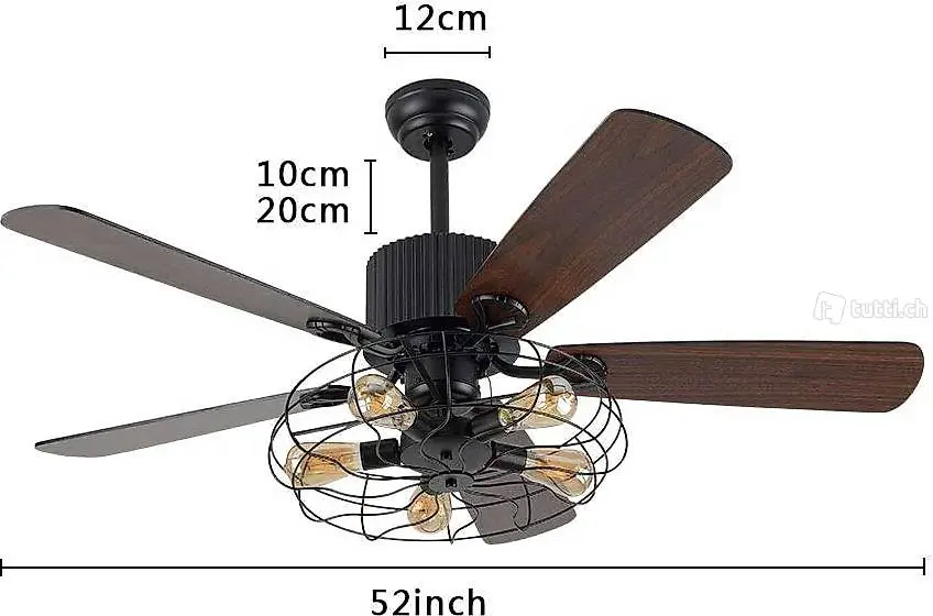 Typ der Deckenventilator-Lichtquelle: Benötigen Sie eine 5 * E27-Schraube (Edison-Glühlampe / LED / CFL / Glühlampe) , empfohlen 20-60 W, ohne Glühlampe.