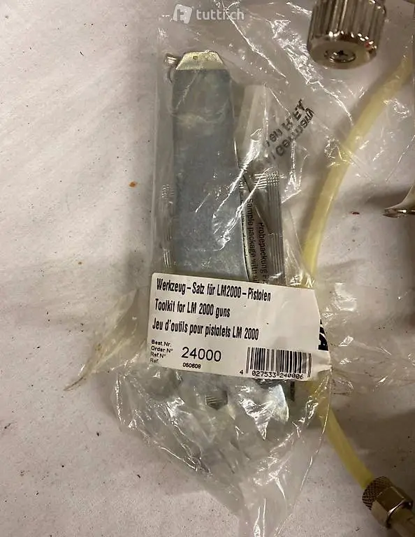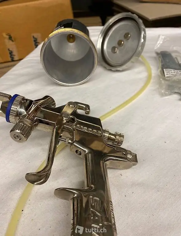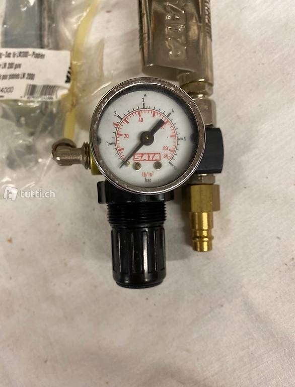 Der Nachrüstsatz ist komplet mit 0,75 l Druckbecher, Luftmikrometer / Manometer und Zuführungsschlauch ausgestattet.