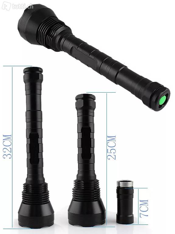 Diese ULTRA FIRE-12T6 Taschenlampe verwendet eine 12x Bulb XM-L T6 LED, die einen sehr hellen Lichtstrahl erzeugt.