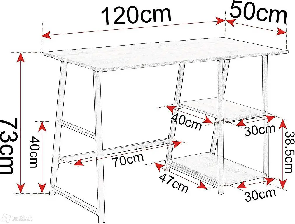 mit 2 Ablagen, aus MDF und Stahl, 120x50x73cm (BxTxH)