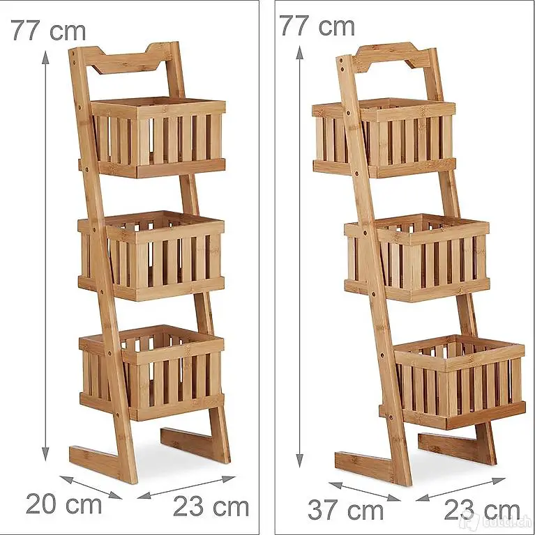 Korbablagen: Stabiles Holzregal mit 3 Körben zur sicheren Aufbewahrung verschiedener Kleinteile