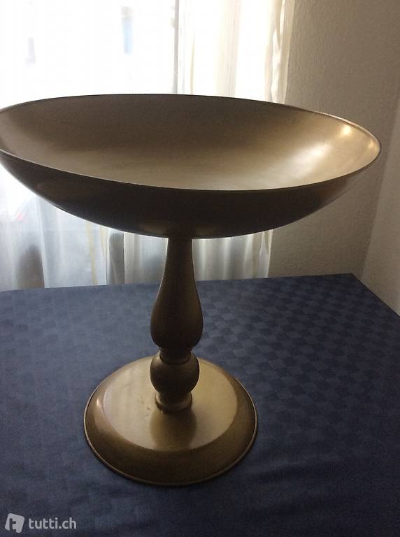 Schöne grosse aus Metall Schale auf Fuss im gutem Zustand grosse