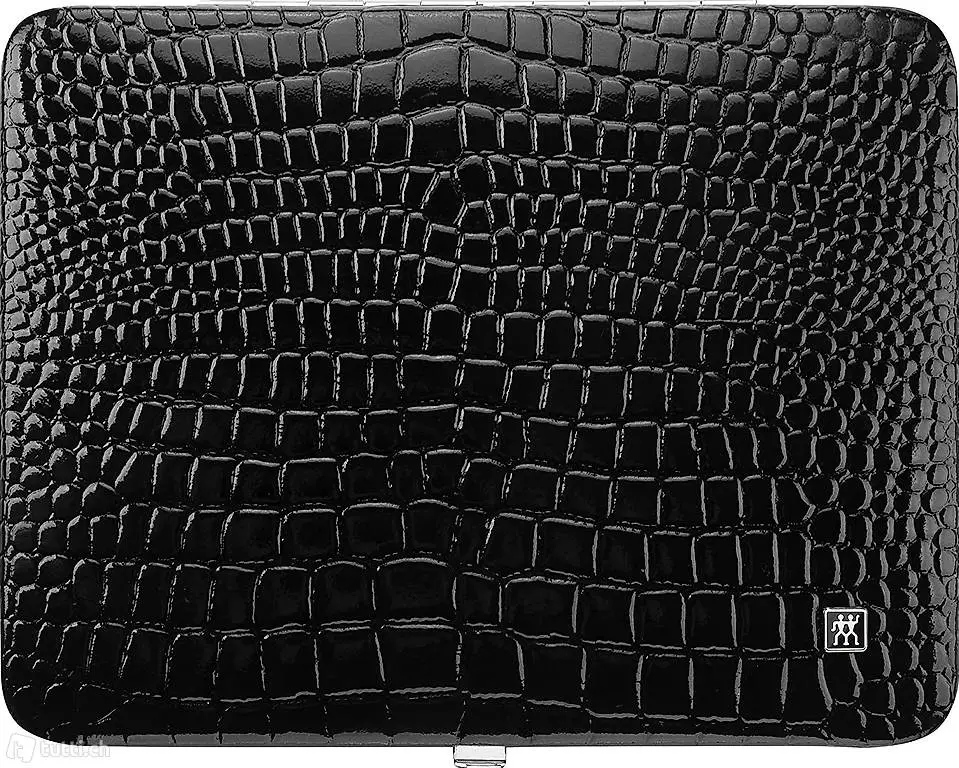 Nagelpflege Komplettset, Rindleder, Kroko Edition, 10-teilig, Schwarz